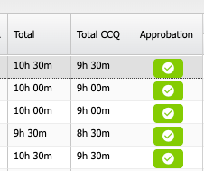 Dans la feuille de temps, une nouvelle colonne a été ajoutée pour te permettre de comparer le temps total des entrées avec le temps ajusté, incluant les ajouts ou déductions liés aux pauses :
