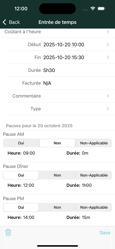 Visuelle dans une entrée de temps (Web, Horodateur IOS, Android)